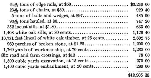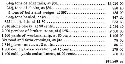Estimate for One Mile, Without Stone Sills, as Laid.