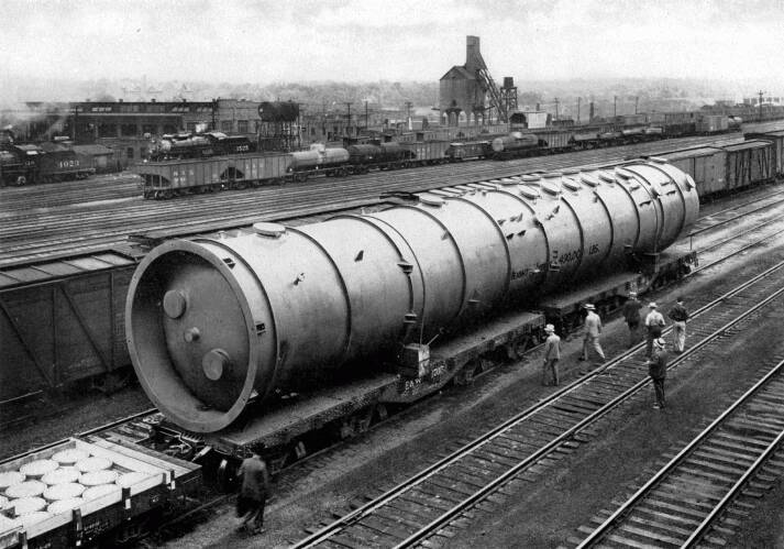 huge shipment, loaded on two flat cars, was hauled from Missouri
