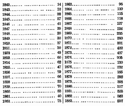 production for the last forty-two years has been as follows: