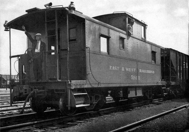 food at meal time. The caboose is equipped with a table, a drinking-water