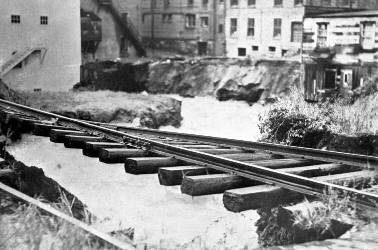RockvilleRails Hanging in Mid-Air Bear Mute Testimony to the Fury of the Flood in the Hartford Area