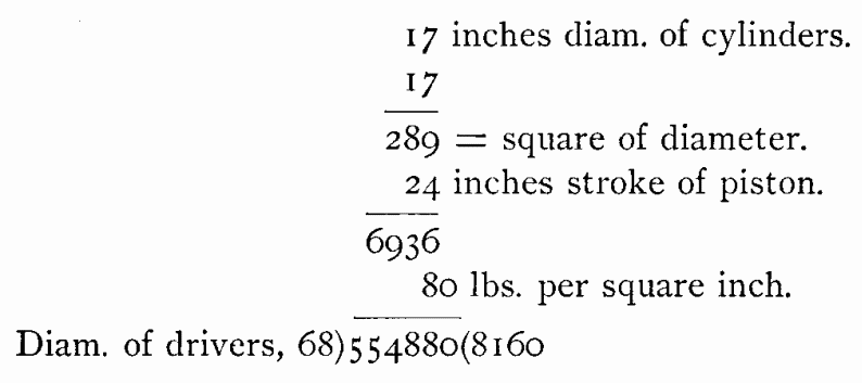 pounds; cylinders of engine, 17 by 24 inches; diameter of drivers,