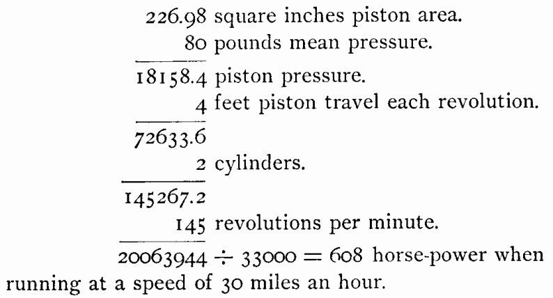 is found. Taking the same engine, the pistons 17 inches diameter,