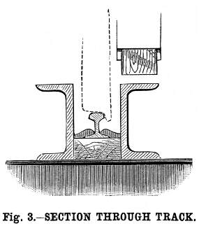 are of 67 pound steel rails, not laid on wooden cross ties, but