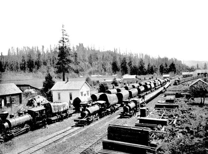 IN THE REDWOODS, CALIFORNIA: LOGGING.