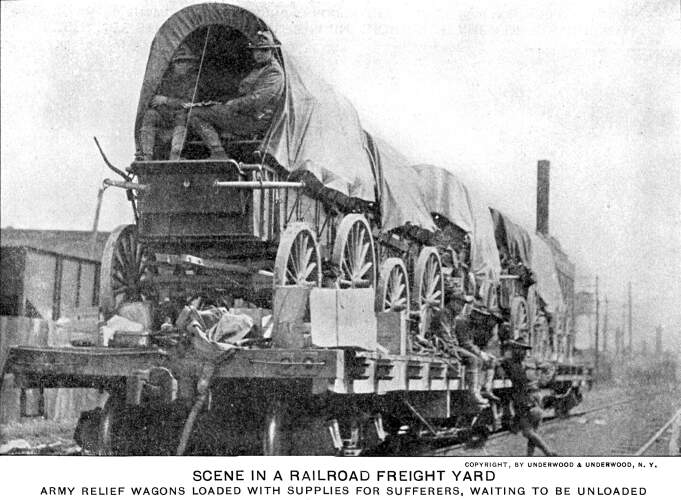 This scene is an aid train in the Mid-West, probably Ohio (Dayton), after the