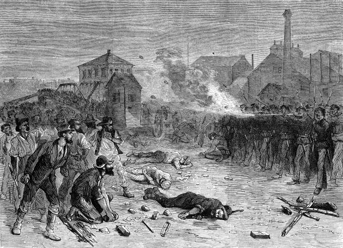 Fight Between the Military and the Rioters at Halsted Street Viaduct