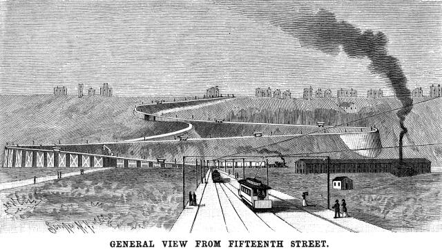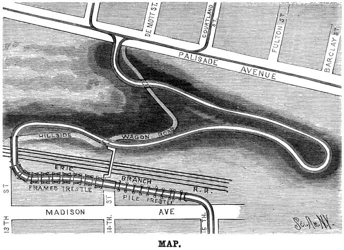 begins. By two loops it climbs the hill to Palisade Avenue, the