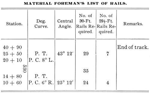 each. With such a list, the material foreman can forward the rails