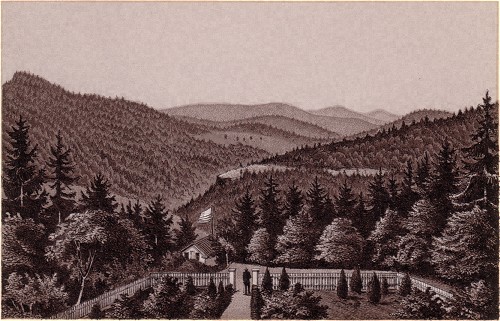 Prospect Rock is straight ahead, and beyond is the sheep pasture that later became Twilight and Sunset Parks. Round Top Mountain is on the left.