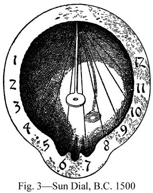 Figs. 3, 4, and 5 show ancient time-keepers; Fig. 6, is the